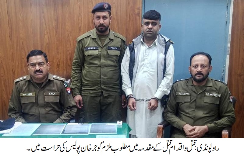 جبکہ دوسری جانب چند یوم قبل شہری کو قتل کرنے والے 02 ملزمان گرفتار،ملزمان نے ذاتی رنجش پر منصوبہ بندی کر کے شہریار کو قتل کر دیا تھا۔ تفصیلات کے مطابق گوجرخان پولیس نے کاروائی کرتے ہوئے چند یوم قبل شہری کو قتل کرنے والے 02 ملزمان کوگرفتارکرلیا،گرفتار ملزمان میں حسن اور ذیشان شامل ہیں،ملزمان نے ذاتی رنجش پر منصوبہ بندی کر کے شہریار کو قتل کر دیا تھا،واقعہ کا مقدمہ مقتول کے والد کی مدعیت میں درج کیا گیا.گوجرخان پولیس نے ہیومن انٹیلی جنس سمیت تمام ذرائع بروئے کار لاتے ہوئے ملزمان کو گرفتار کر ٌٌلیا .