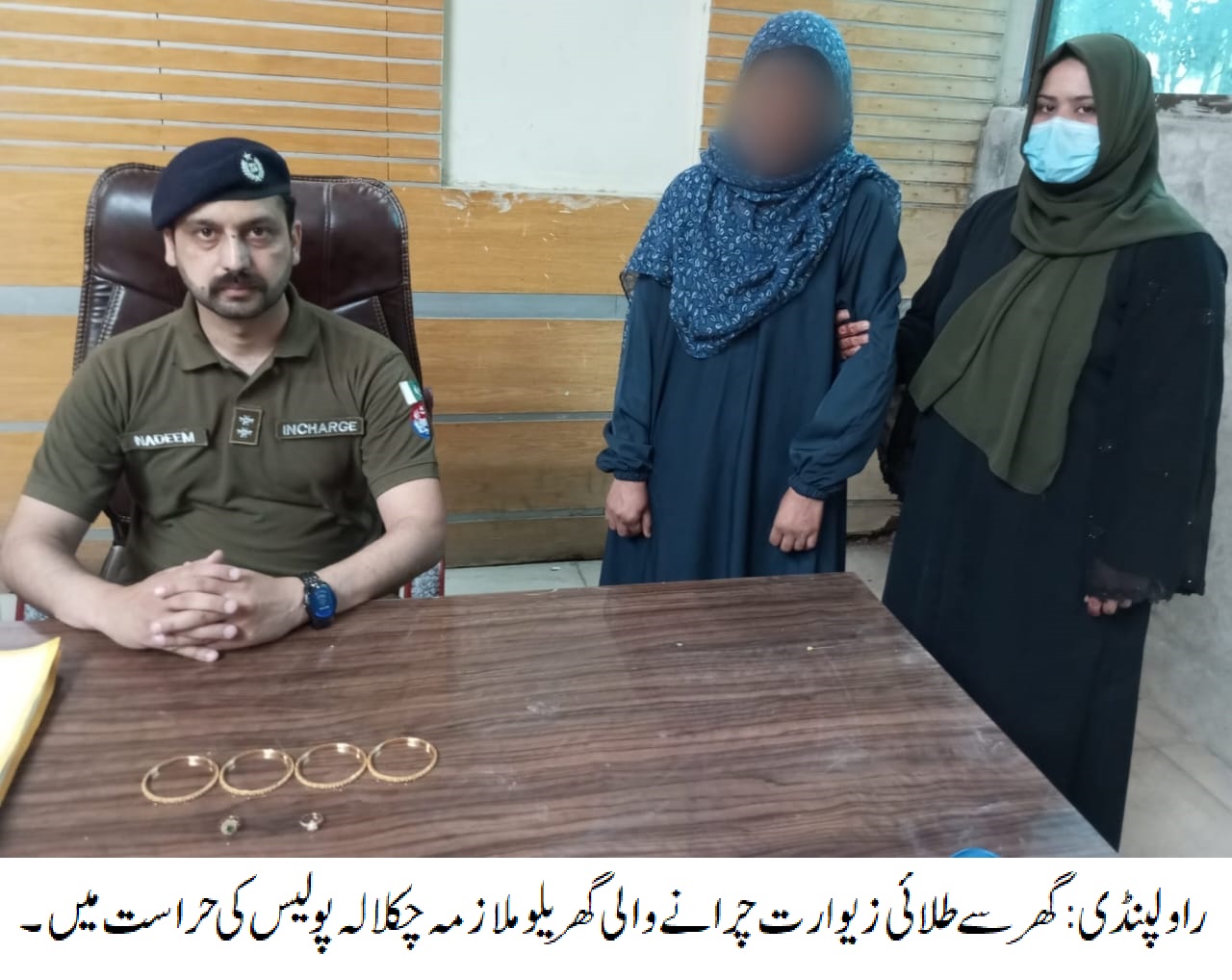 تھانہ چکلا لہ ،گھر سے طلائی زیوارت چرانے والی گھریلو ملازمہ گرفتار