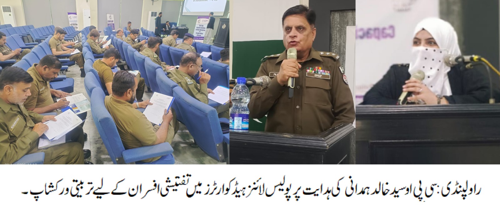تربیتی ورکشاپ کا انعقاد شارپ(SHARP) این جی او کے تعاون سے کیا گیا،تربیتی ورکشاپ میں ڈی ایس پی سی آر او محمد ندیم اور تھانہ جات سے تفتیشی افسران نے شرکت کی، ورکشاپ میں ڈی ایس پی سی آر او محمد ندیم، سینئر لیگل ایکسپرٹ شارپ(SHARP) انیلہ سرفراز اور دیگر نمائندوں نے تفتیشی افسران کو لیکچرز دئیے، ورکشاپ میں تفتیشی افسران کو بنیادی انسانی حقوق اور مہاجرین کے حقوق کے حوالے سے آگاہی لیکچرز دئیے گئے،معاشرہ کے محروم طبقات کے حقوق کے تحفظ،تھانوں میں آنے والے شہریوں سے بہترین رویہ، خواتین، بچوں اور ٹرانسجینڈرز کے حقوق کے تحفظ کے حوالے سے بھی لیکچرز دیے گئے.