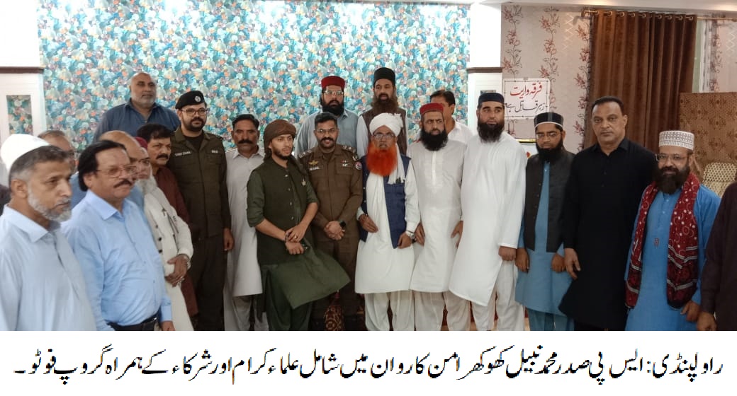تفصیلات کے مطابق وزیر اعلیٰ پنجاب کے ویژن اور سی پی او سید خالد ہمدانی کی ہدایات کے مطابق کاروان امن کی کہوٹہ میں آمد، ایس پی صدرمحمدنبیل کھوکھر،ڈی ایس پی کہوٹہ محمد افضل لودھی، ایس ایچ اوزکہوٹہ سرکل سمیت دیگر افسران کاروان امن کے ساتھ تھے، کاروان امن میں مولانا حافظ محمد اقبال رضوی، حافظ قاسم ایوب، صاحبزادہ عثمان غنی، قاری خالد محمود، سید عطاء اللہ شاہ بخاری، مرزا طاہر سکندر، قاسم نقوی، قاضی محمد شکور الہٰی قادری،قاضی جنید الرحمٰن،مفتی ذیشان عمیر، سید شبیر حسن کاظمی،شوکت عباس جعفری، سید زاہد عباس کاظمی، علامہ کوثر عباس قمی، علامہ ظہور نقیبی، صداقت حسین شاہ، حفیظ الرحمٰن، شیر محمد حفیظ، سائیں محمد اعجاز ملک، ملک اصغر خان بابر، حاجی عبدالمجید،یاسر اسمٰعیل مغل اوردیگر ممبران بھی شامل تھے، محرم الحرام کے دوران امن و امان کو یقینی بنانے کے سلسلہ میں کہوٹہ میں اجلاس، علماء کرام کا کہنا تھا کہ سینئر پولیس افسران اورجید علماء پر مشتمل کاروان امن کہوٹہ آیا جن کا خیرمقدم کرتے ہیں.