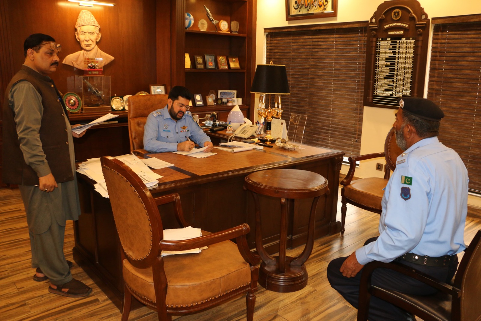 تفصیلات کے مطابق انسپکٹر جنرل آف پولیس اسلام آباد سید علی ناصر رضوی کے خصوصی احکامات پرسینئر سپر ٹنڈنٹ آف پولیس سکیورٹی ڈویژن محمد سر فراز ورک نے اپنے دفتر میں پولیس افسران کے مسائل سنے ، سنگین نوعیت کے معاملات پر سینئر پولیس افسران کو ازسرنوانکوائریاں مکمل کرنے کی ہدایت کی .